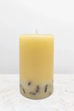 Candela in paraffina di qualità, senza alcuna profumazione. Creata e decorata interamente a mano.